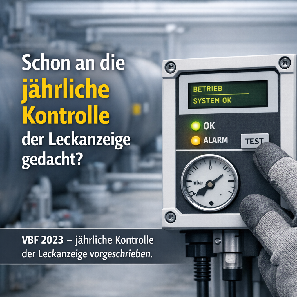 Wussten Sie, dass laut VBF 2023 die Dichtheitskontrolle bei luftüberwachten Leckanzeigen entfällt? Dafür ist jedoch die jährliche Kontrolle der Leckanzeige Pflicht.