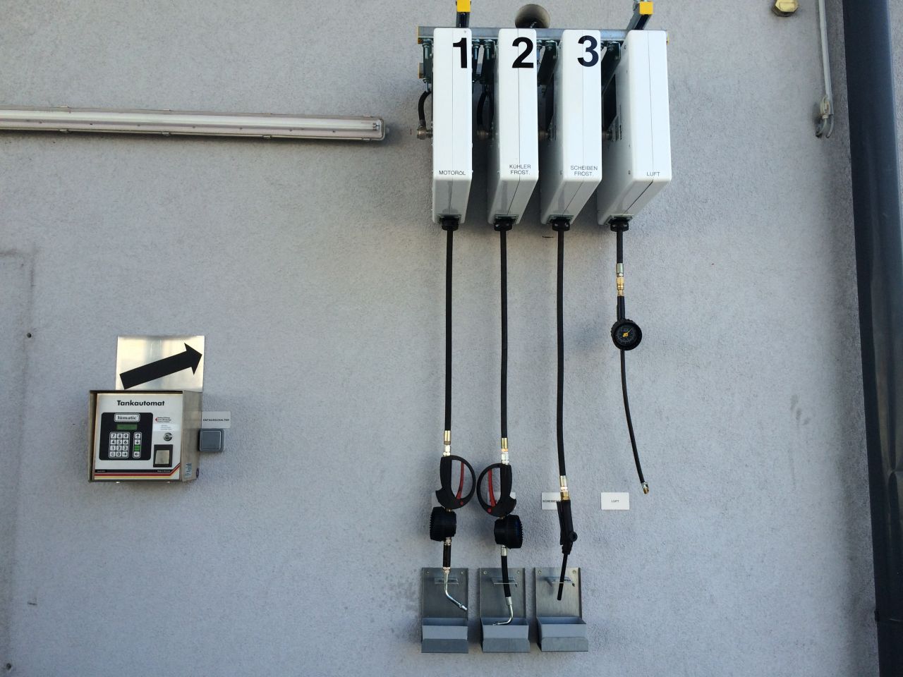 Zusätzliche Medien, wie Scheibenfrostschutz etc. werden nach der Freischaltung über einen eigenen Tankautomaten über Schlauchroller abgegeben.