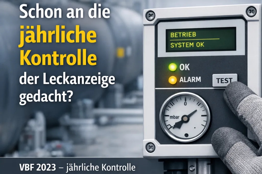 jährliche Leckanzeigeüberprüfung vorgeschrieben! Wussten Sie, dass laut VBF 2023 die Dichtheitskontrolle bei luftüberwachten Leckanzeigen entfällt? Dafür ist jedoch die jährliche Kontrolle der Leckanzeige Pfli… jährliche Leckanzeigeüberprüfung vorgeschrieben!
