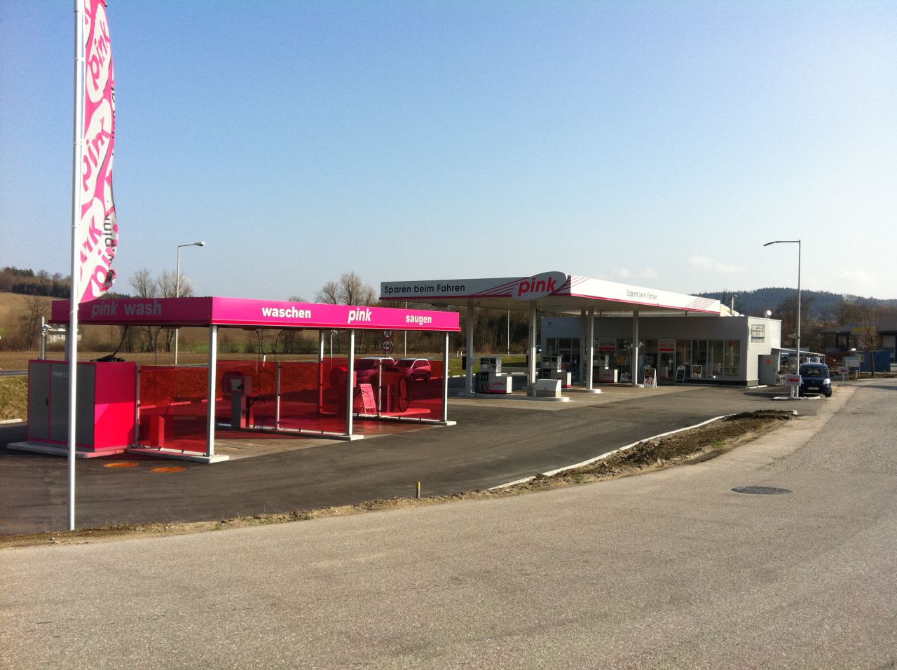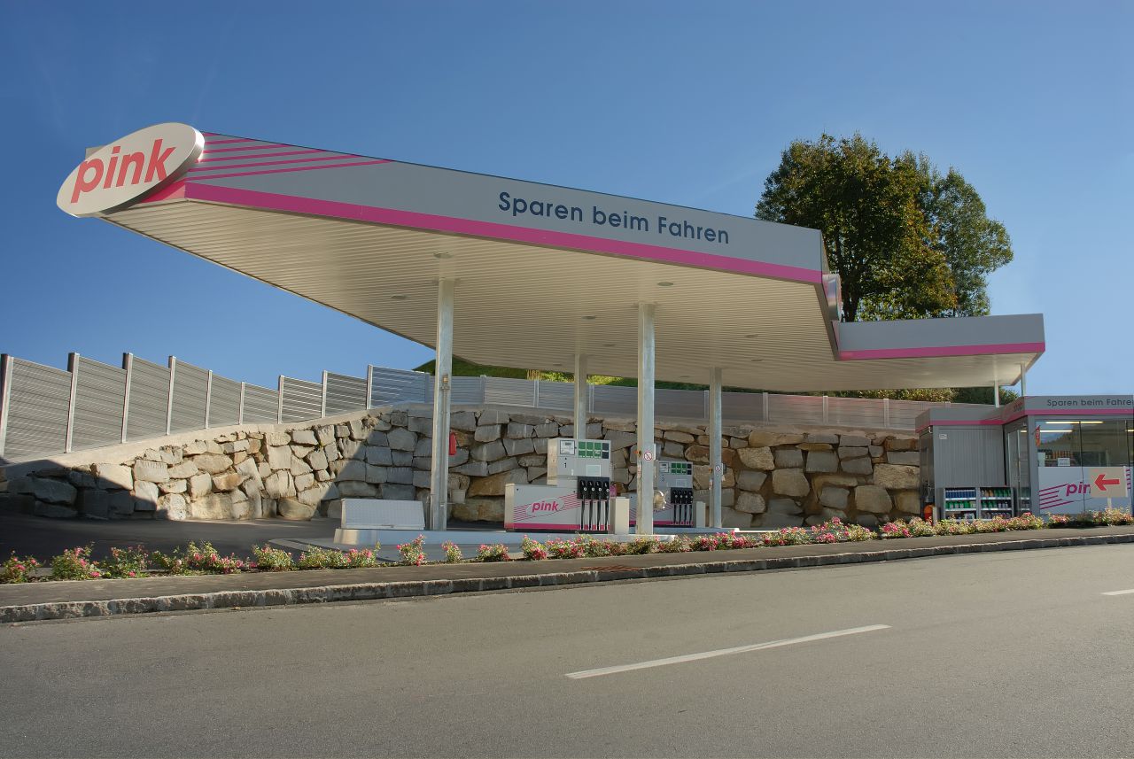 Traunfellner Tankstelle Temmel Nutzfahrzeuge Pink-Tankstellen LogServ Tankstelle BP Kasberger GmbH Pink-Tankstellen Planung und Neubau div. Pink-Tankstellen der Firma Kreuzmayr GmbH in Oberösterreich.